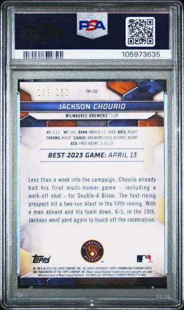 2023 Jackson Chourio Bowman's Best Top Prospects Blue Refractor RC /150